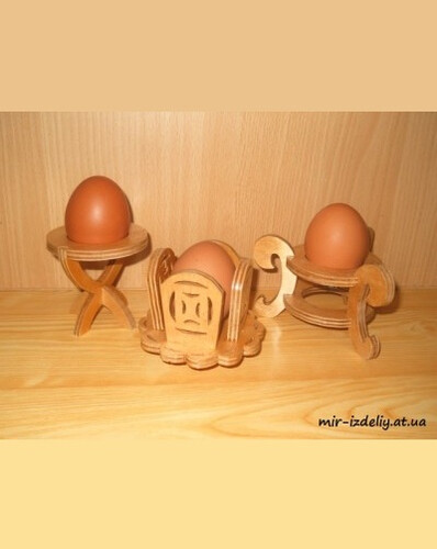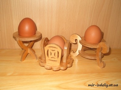 Ниже представлено описание изготовления сразу трех очень простых подставок под пасхальные яйца. Изготовление этих подставок не потребует много времени и материала. При выпиливании подставок были использованы небольшие отрезки фанеры, оставшиеся от изготовления других самоделок.