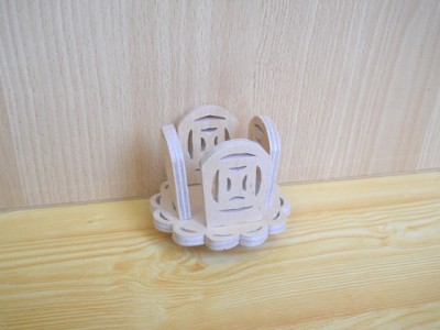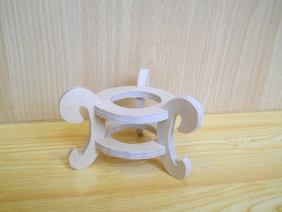 Для крепления вертикальных элементов к основанию у этих элементов делаются шипы, а в основании пазы. Кружки приклеиваются друг к другу, а затем приклеиваются снизу к основанию подставки.