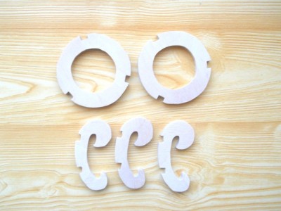 В колечке предусмотрено два паза, а в большой «стойке» шипы. Кроме этого в «стойках» сделаны пазы для их соединения.