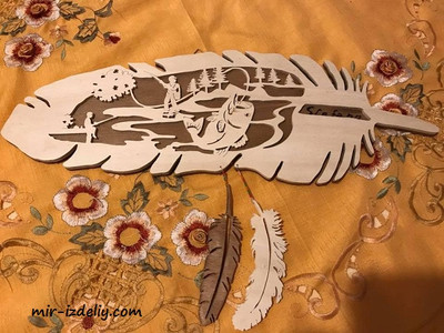 №4046 - Панно в виде пёрышка для рыбака из фанеры