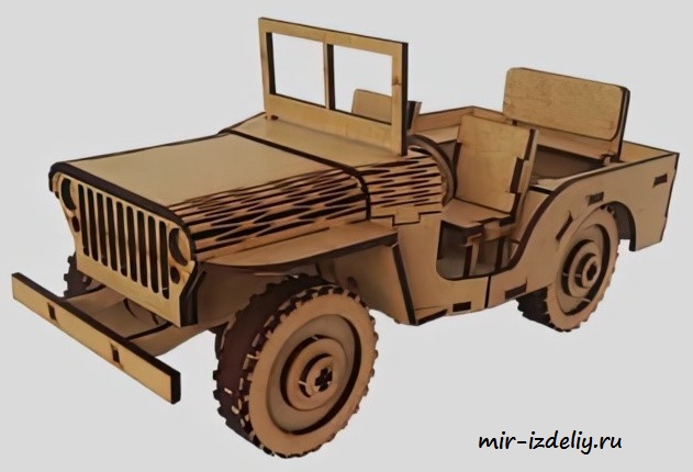 Автомобиль джип с артиллерийской пушкой из фанеры или дерева