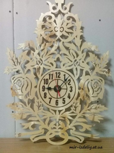 Часы с розами из фанеры
