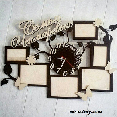 Фоторамка с ажурными часами из фанеры