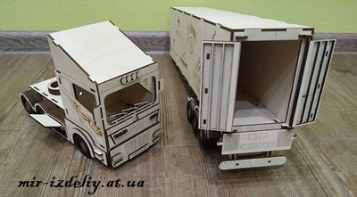 Грузовик-бар для бутылки и двух рюмок из фанеры