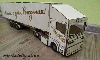 Деревянный автомобиль lowboy-truck из фанеры или дерева