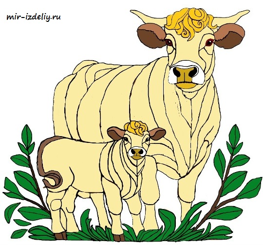 Интарсия корова с теленком