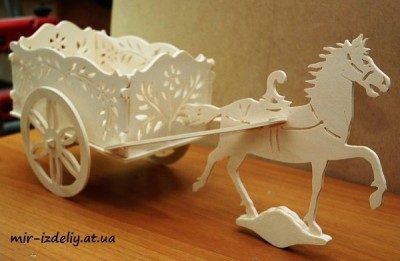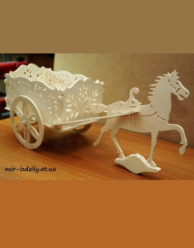 Лошадь с цветком и каретой из фанеры