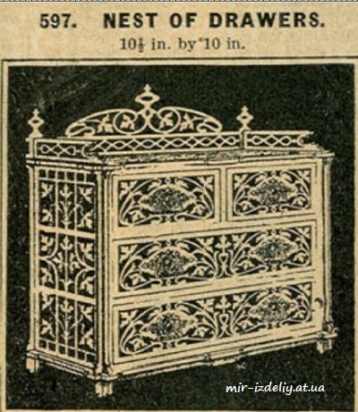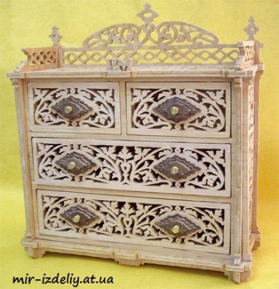 Комод резной с ящиками из фанеры Мб. 1 2 3 4 5 №2701 - Комод резной с ящиками (Nest of drawers) Чертеж в формате pdf и cdr Размер: 1.82 Mb Автор чертежа: Hobbies fretwork catalogue, England, 1912 Скачать Чертеж сборной модели для выпиливания лобзиком своими руками Категория чертежа: Мебель из фанеры Скачать чертеж комод Похожие изделия Комод на пять ящиков из фанеры Комод под монитор из фанеры Комод для детской из фанеры Тумба на колёсиках из фанеры Мини-комод из фанеры Комод с мозаикой из фанеры Прикроватный столик из фанеры Комод для косметики из фанеры