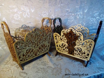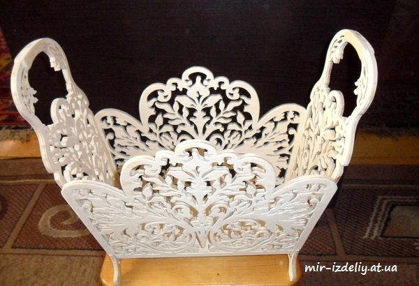 Корзинка Замысловатый узор поперечная ручка из фанеры