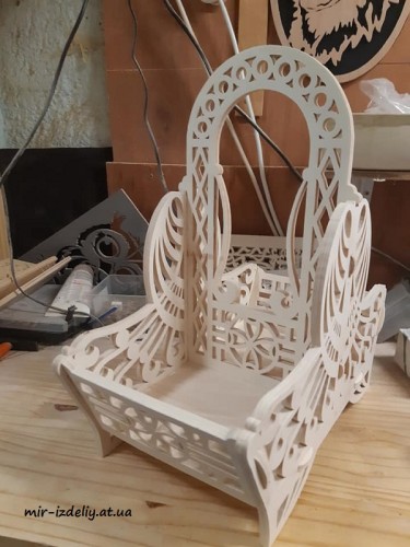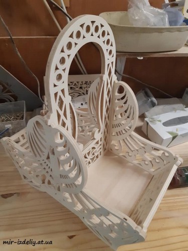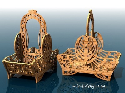Корзинка Замысловатый узор поперечная ручка из фанеры