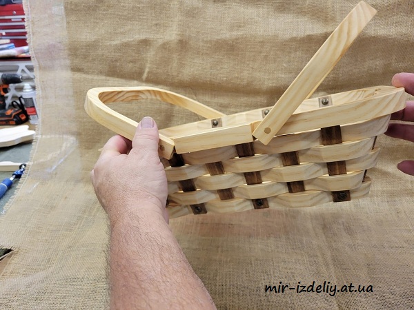 Корзинка Замысловатый узор поперечная ручка из фанеры