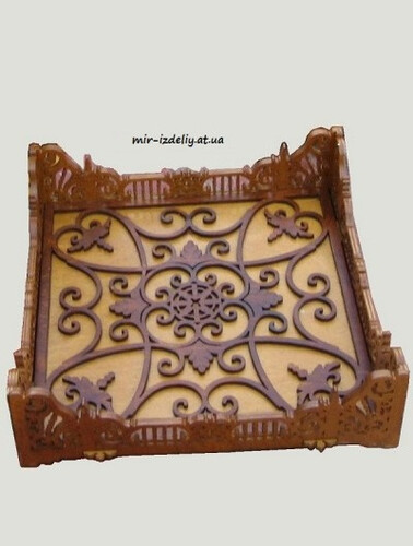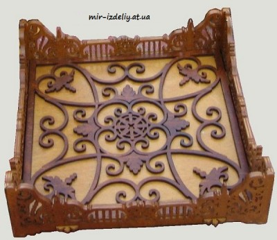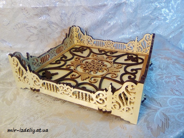 Корзинка Замысловатый узор поперечная ручка из фанеры