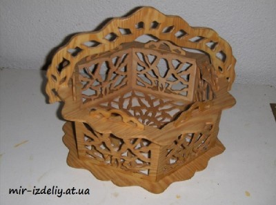 Корзинка Замысловатый узор поперечная ручка из фанеры