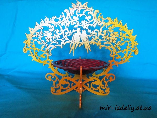 Корзинка Замысловатый узор поперечная ручка из фанеры