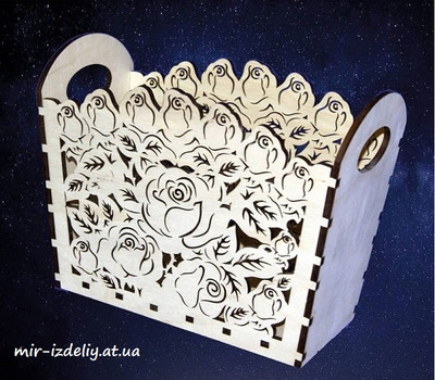 Корзинка Замысловатый узор поперечная ручка из фанеры