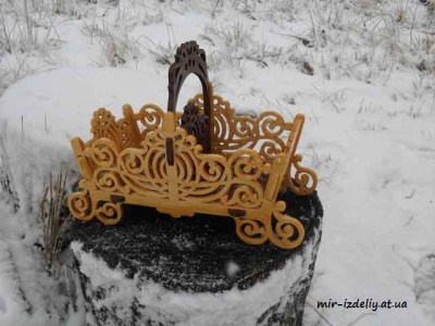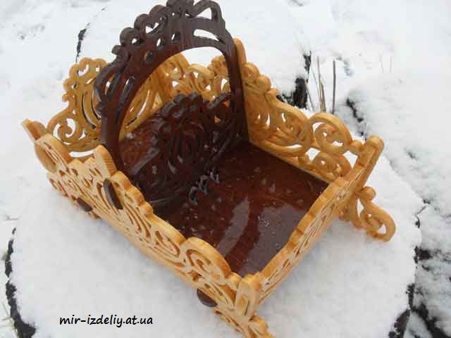 Корзинка Замысловатый узор поперечная ручка из фанеры
