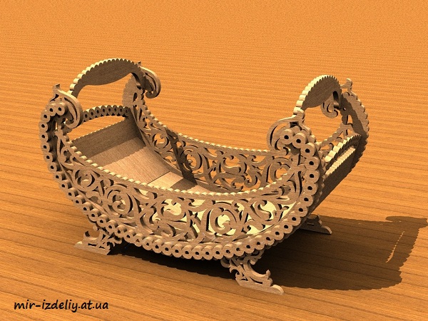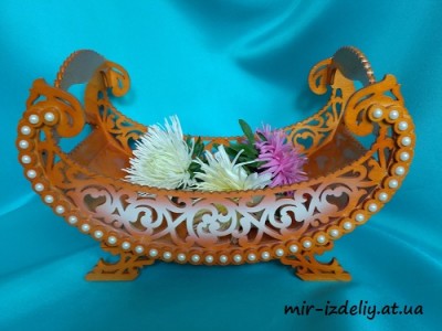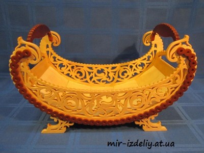 Корзинка Замысловатый узор поперечная ручка из фанеры