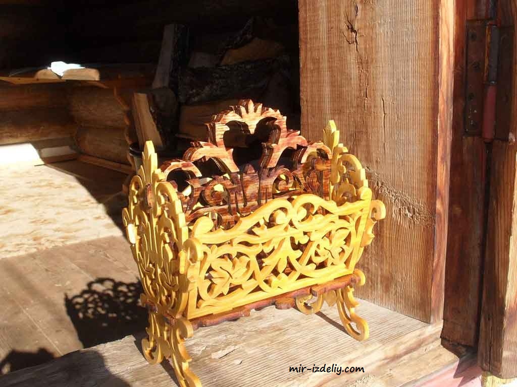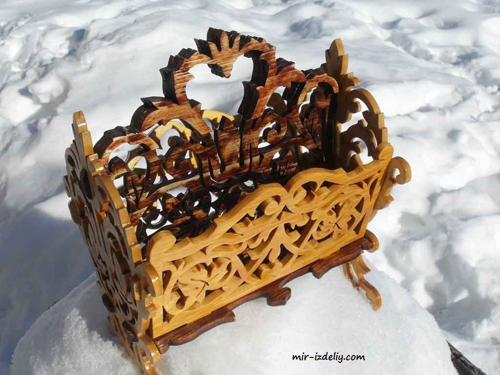 Корзинка Замысловатый узор поперечная ручка из фанеры