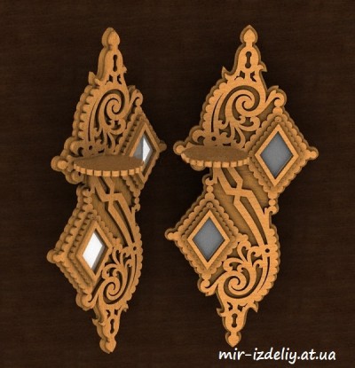 Маленькая полочка с двумя ромбовидными зеркалами из фанеры