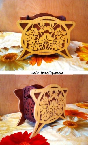 Корзинка Замысловатый узор поперечная ручка из фанеры