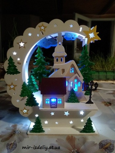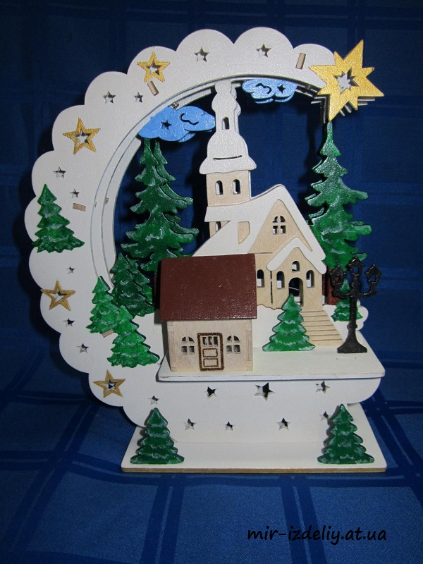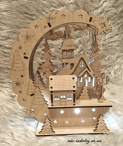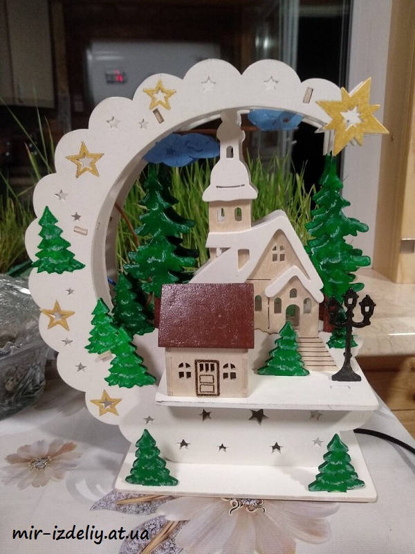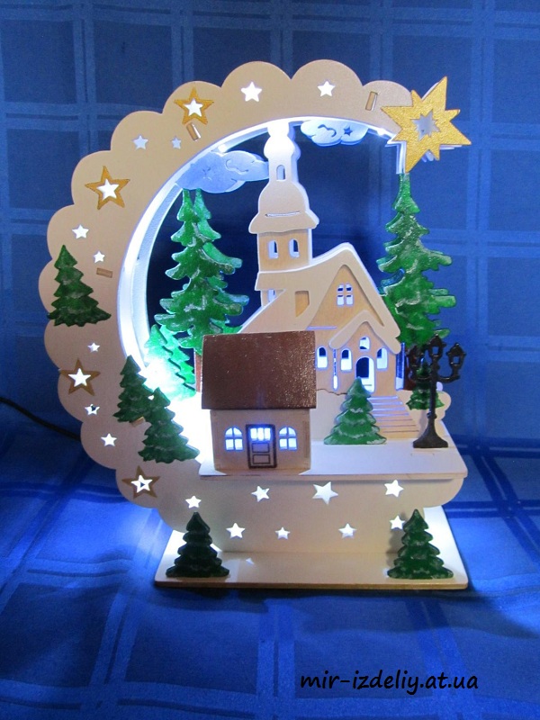 Новогодняя настольная лампа из фанеры