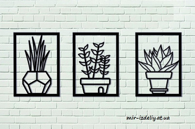 Панно три цветка в горшках