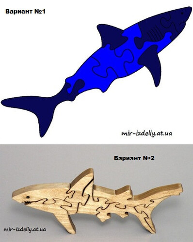Пазл синяя акула из фанеры