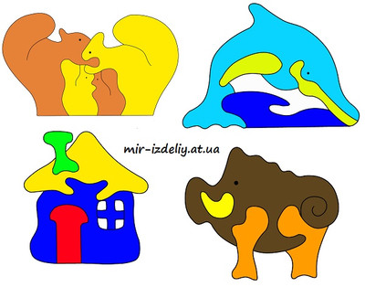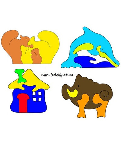 Пазлы Белочек, Дельфина, Домика и Кабанчика из фанеры
