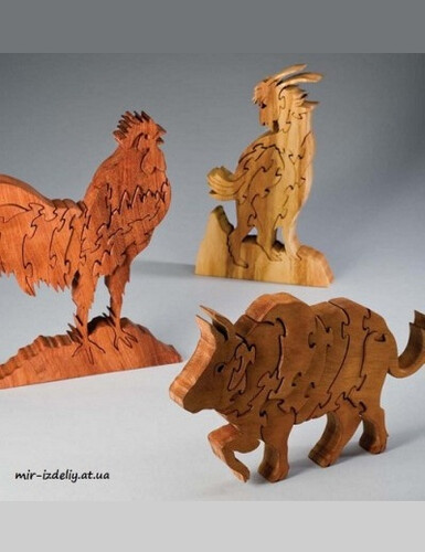 Пазлы коза, петух и бык из фанеры