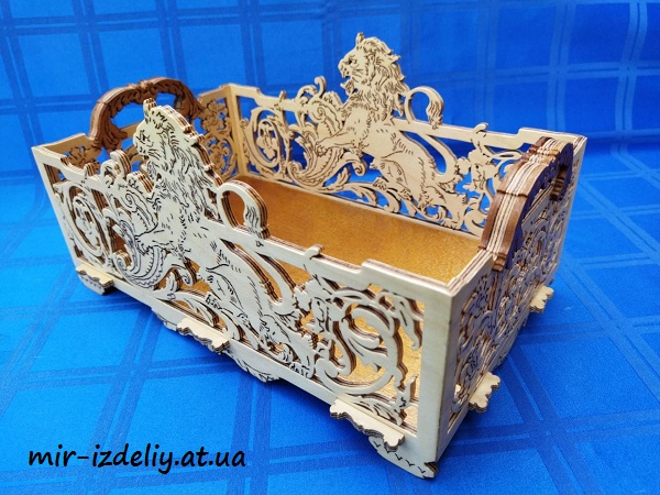 Корзинка Замысловатый узор поперечная ручка из фанеры