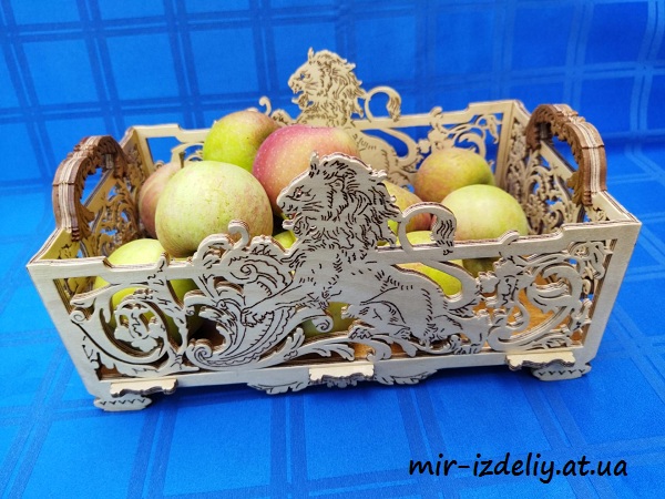 Корзина с орнаментом персиков на три ячейки из фанеры