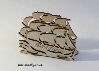 Салфетница с парусником из фанеры