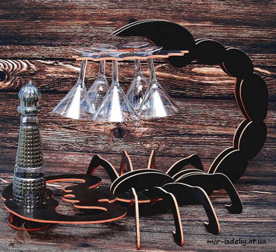 №3884 - Подставка скорпион для вина, выпиливание лобзиком