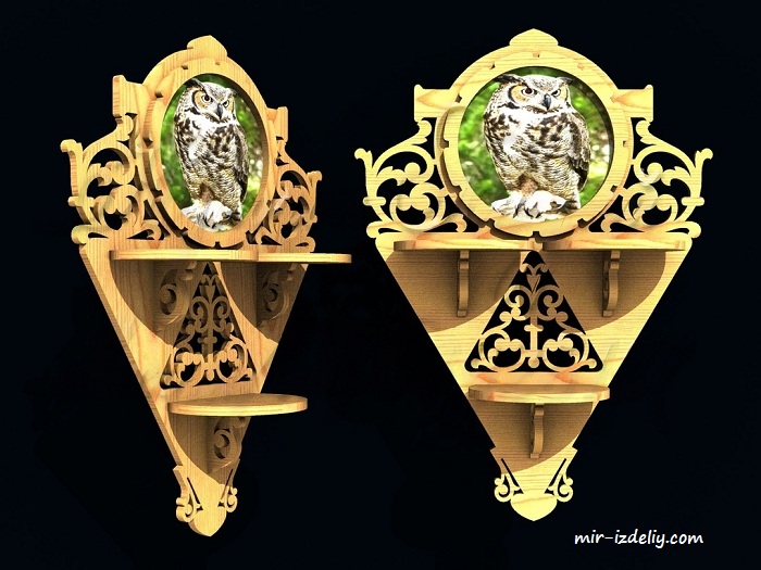 Полочка настенная, треугольник на 2 яруса с фотографией из фанеры