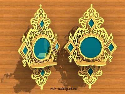 Полочка с 1 круглым зеркалом и 4 ромбических из фанеры