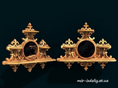 Полочка три яруса с круглым зеркалом