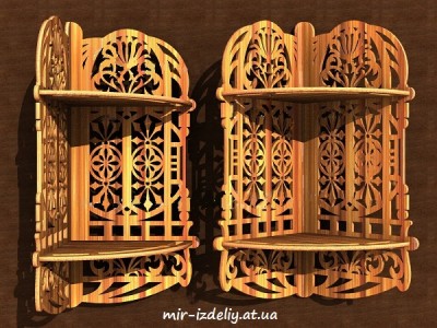 Полочка угловая витой узор на два яруса из фанеры