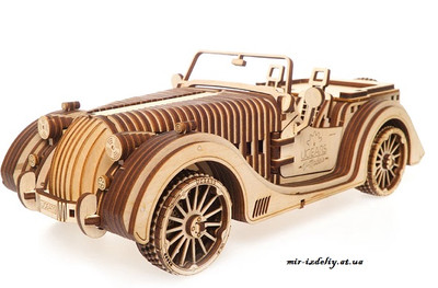 Ugears вновь обращается к любимой всеми классике и представляет новинку автопарка деревянных 3D- конструкторов: утонченно элегантный и бескомпромиссно быстрый Родстер VM-01.