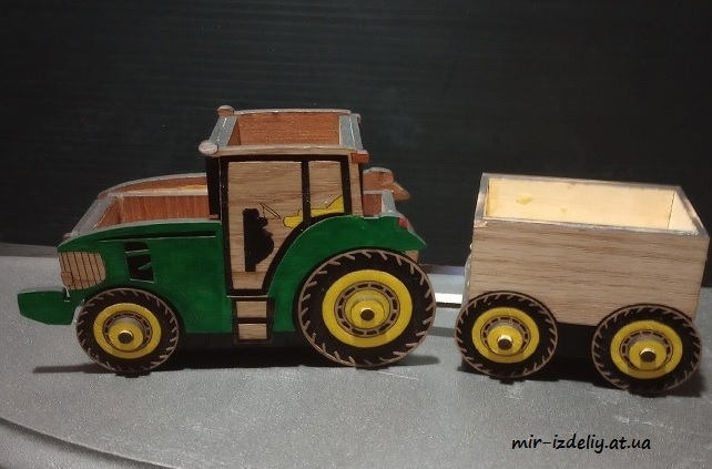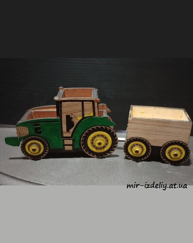 Грузовик-бар для бутылки и двух рюмок из фанеры