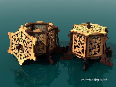 Шкатулка 8ми гранная с мелким узором из фанеры