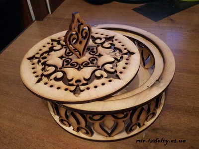Шкатулка круглая резная из фанеры