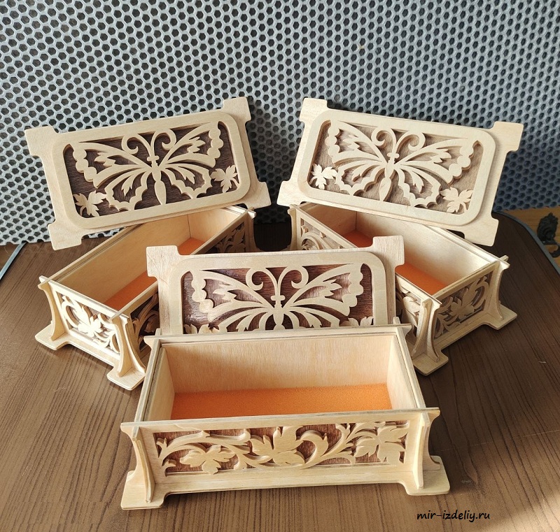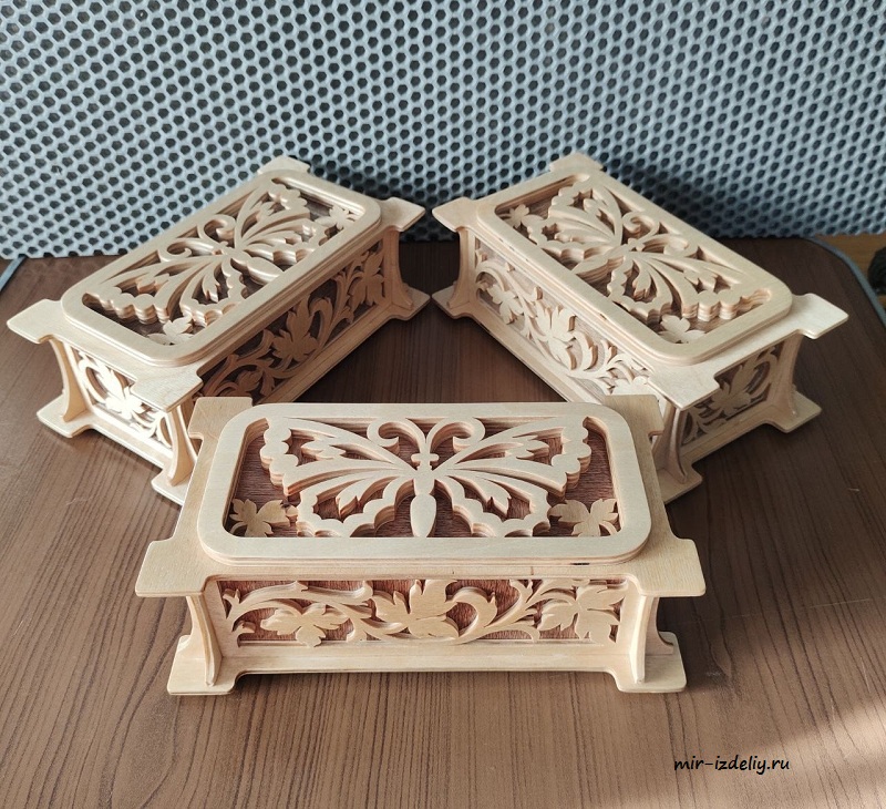 Шкатулка 6ти угольная Цветок-бабочка из фанеры