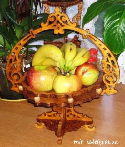 Ваза для фруктов без бортика, с высокой ручкой из фанеры
