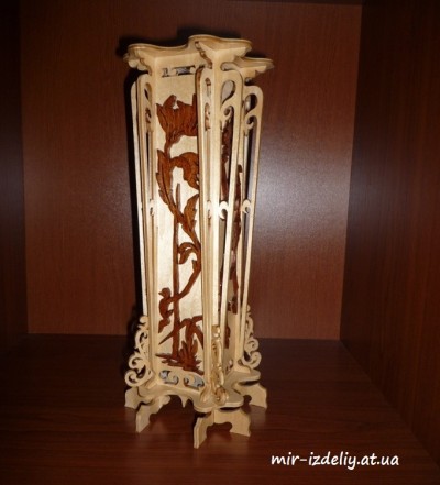 В векторе есть еще один вариант вазы с уменьшенной высотой, которая готовилась для собственных нужд. В pdf сделана подготовка чертежа для распечатки на листах A4 и склейки внахлест с наложением 2 мм. Предполагается выпиливание элементов из материала толщиной 6 мм