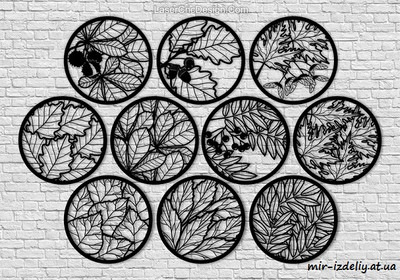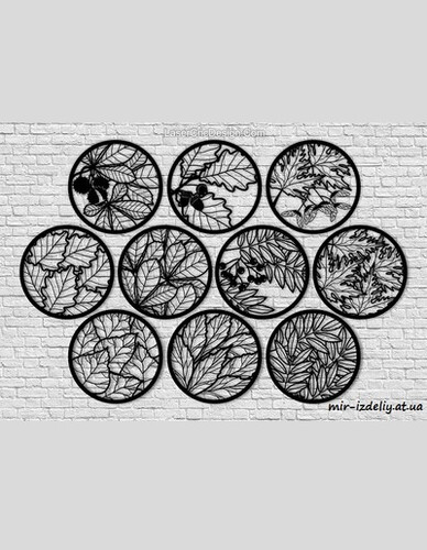 Восемь панно с листьями деревьев
