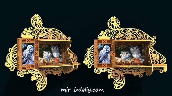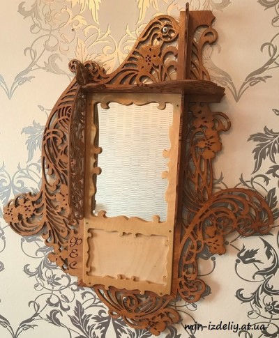 Зеркало с узорной полочкой из фанеры